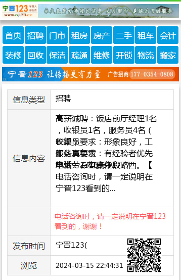 高薪诚聘:饭店前厅经理1名,收银员1名,服务员4名(长期)