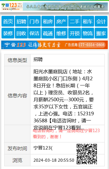 阳光水墨庭院店(地址:水墨庭院小区门口东侧)4月28日开业!急招长期(一年以上)理货员、收银员2名,月薪酬2500元--3000元,要求35岁以下女性,五官端正,上进心强。电话:15231936588 【电话咨询时,请一定说明在宁晋123看到的,谢谢!】 |