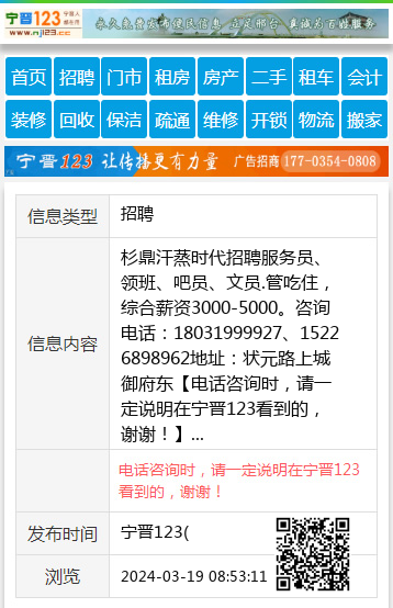 杉鼎汗蒸时代招聘服务员、领班、吧员、文员.管吃住,综合薪资3000-5000。咨询电话:18031999927、15226898962地址:状元路上城御府东 【电话咨询时,请一定说明在宁晋123看到的,谢谢!】 |