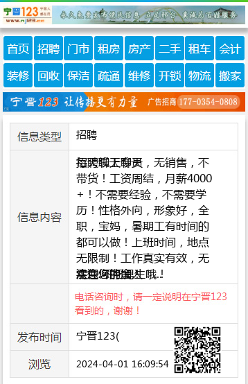 | 防骗提醒: | 宁晋123(www.nj123.cc)提醒您:手工活、网络兼职、刷单,都是骗子!凡以各种名义收取费用的都是骗子!找工作是往兜里挣钱,让你往外掏钱的都是骗子!异地招聘请提高警惕,谨防诈骗! |