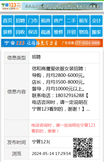 | 防骗提醒: | 宁晋123(www.nj123.cc)提醒您:手工活、网络兼职、刷单,都是骗子!凡以各种名义收取费用的都是骗子!找工作是往兜里挣钱,让你往外掏钱的都是骗子!异地招聘请提高警惕,谨防诈骗! |
