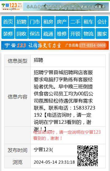 | 防骗提醒: | 宁晋123(www.nj123.cc)提醒您:手工活、网络兼职、刷单,都是骗子!凡以各种名义收取费用的都是骗子!找工作是往兜里挣钱,让你往外掏钱的都是骗子!异地招聘请提高警惕,谨防诈骗! |