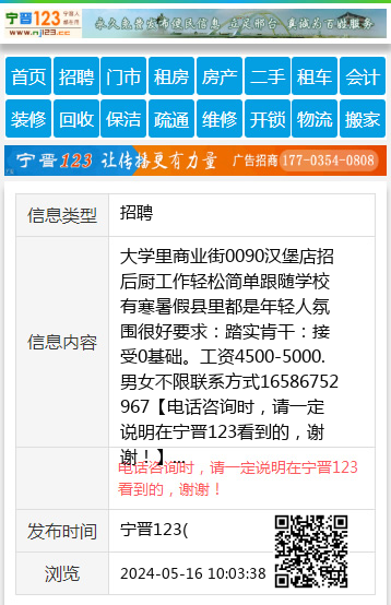 大学里商业街0090汉堡店招后厨工作轻松简单跟随学校有寒暑假县里都是年轻人氛围很好要求:踏实肯干:接受0基础。工资4500-5000.男女不限联系方式16586752967 【电话咨询时,请一定说明在宁晋123看到的,谢谢!】 |