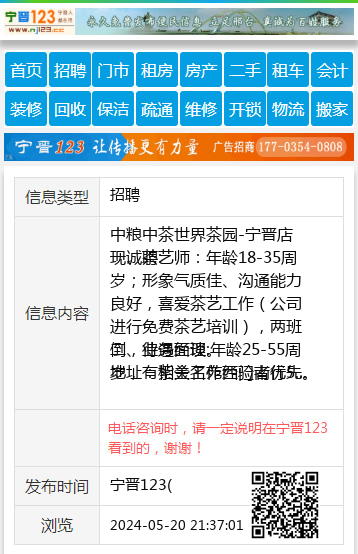 一、茶艺师:年龄18-35周岁;形象气质佳、沟通能力良好,喜爱茶艺工作(公司进行免费茶艺培训),两班倒,待遇面谈。