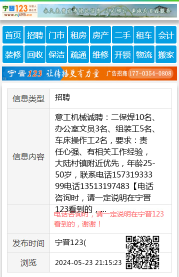 意工机械诚聘:二保焊10名、办公室文员3名、组装工5名、车床操作工2名,要求:责任心强、有相关工作经验,大陆村镇附近优先,年龄25-50岁,联系电话15731933399电话13513197483 【电话咨询时,请一定说明在宁晋123看到的,谢谢!】 |