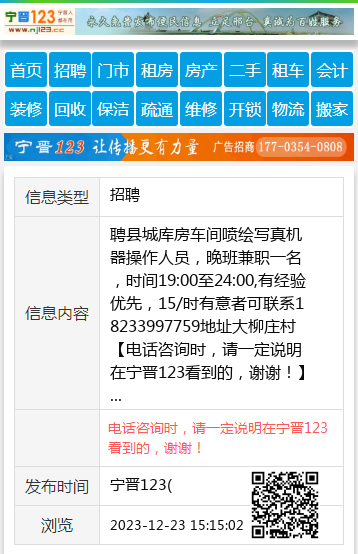 | 防骗提醒: | 宁晋123(www.nj123.cc)提醒您:手工活、网络兼职、刷单,都是骗子!凡以各种名义收取费用的都是骗子!找工作是往兜里挣钱,让你往外掏钱的都是骗子!异地招聘请提高警惕,谨防诈骗! |