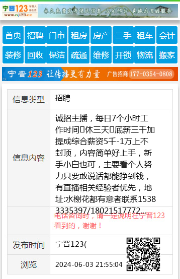 诚招主播,每日7个小时工作时间✅休三天✅底薪三千加提成综合薪资5千-1万上不封顶,内容简单好上手,新手小白也可,主要看个人努力只要敢说话都能挣到钱,有直播相关经验者优先,地址:水榭花都有意者联系15383335397/18021517772 【电话咨询时,请一定说明在宁晋123看到的,谢谢!】 |