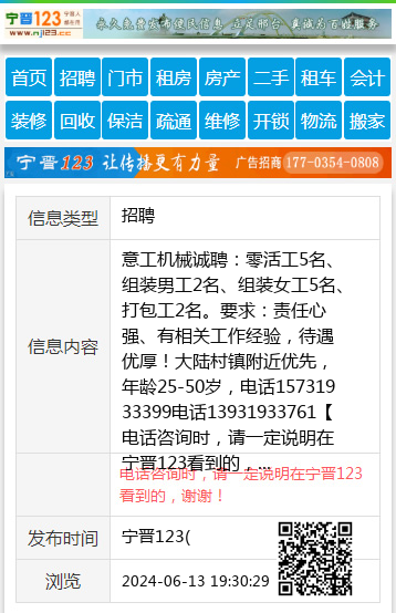 | 防骗提醒: | 宁晋123(www.nj123.cc)提醒您:手工活、网络兼职、刷单,都是骗子!凡以各种名义收取费用的都是骗子!找工作是往兜里挣钱,让你往外掏钱的都是骗子!异地招聘请提高警惕,谨防诈骗! |