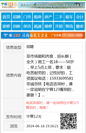 菜市场顺和肉食,招长期(全天)男工一名18——50岁,早上5点上班,要求:能吃苦耐劳的,记性好的,工资面议电话:15933699581非诚勿扰 【电话咨询时,请一定说明在宁晋123看到的,谢谢!】 |