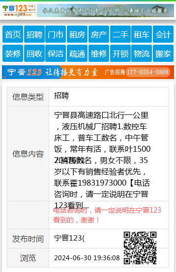 2.销售数名,男女不限,35岁以下有销售经验者优先,联系霍19831973000 【电话咨询时,请一定说明在宁晋123看到的,谢谢!】 |