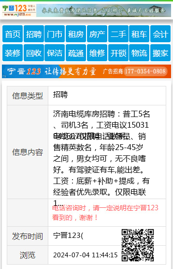 济南电缆库房招聘:普工5名、司机3名,工资电议15031941667仅限电话联系。