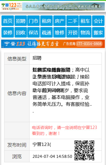 | 防骗提醒: | 宁晋123(www.nj123.cc)提醒您:手工活、网络兼职、刷单,都是骗子!凡以各种名义收取费用的都是骗子!找工作是往兜里挣钱,让你往外掏钱的都是骗子!异地招聘请提高警惕,谨防诈骗! |