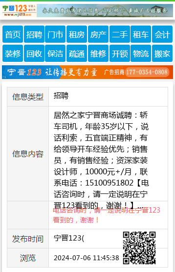 居然之家宁晋商场诚聘:轿车司机,年龄35岁以下,说话利索,五官端正精神,有给领导开车经验优先;销售员,有销售经验;资深家装设计师,10000元+/月,联系电话:15100951802 【电话咨询时,请一定说明在宁晋123看到的,谢谢!】 |