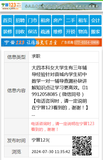 大四本科女大学生有三年辅导经验针对县城内学生初中数学一对一辅导查漏补缺讲解知识点让学习更高效。☎19912058085(微信同号) 【电话咨询时,请一定说明在宁晋123看到的,谢谢!】 |