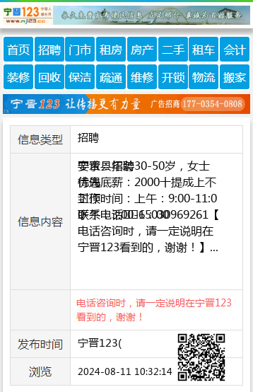 | 防骗提醒: | 宁晋123(www.nj123.cc)提醒您:手工活、网络兼职、刷单,都是骗子!凡以各种名义收取费用的都是骗子!找工作是往兜里挣钱,让你往外掏钱的都是骗子!异地招聘请提高警惕,谨防诈骗! |