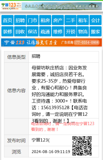 母婴坊耿庄桥店:因业务发展需要,诚招店员若干名。要求25-35岁,热爱母婴行业,有爱心和耐心!具备良好的沟通能力和服务意识。工资待遇:3000+!联系电话:15613935128 【电话咨询时,请一定说明在宁晋123看到的,谢谢!】 |