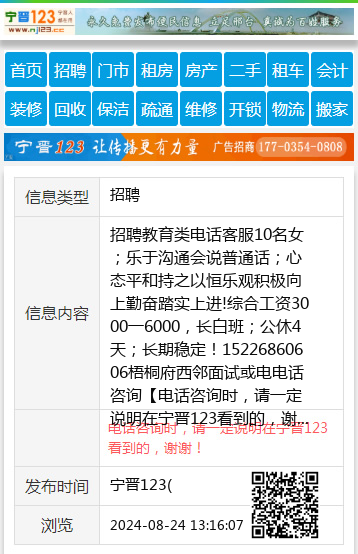 | 防骗提醒: | 宁晋123(www.nj123.cc)提醒您:手工活、网络兼职、刷单,都是骗子!凡以各种名义收取费用的都是骗子!找工作是往兜里挣钱,让你往外掏钱的都是骗子!异地招聘请提高警惕,谨防诈骗! |