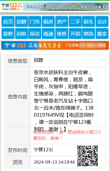 张京水皮肤科主治牛皮癣,白殿风,青春痘,脱发,扁平疣,灰指甲,阳痿早泄,生殖感染,两腮红,脚鸡眼等宁晋县老汽车站十字路口北一百米/路东绿牌子。13803197649V同 【电话咨询时,请一定说明在宁晋123看到的,谢谢!】 |