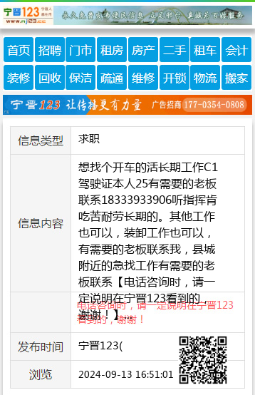想找个开车的活长期工作C1驾驶证本人25有需要的老板联系18333933906听指挥肯吃苦耐劳长期的。其他工作也可以,装卸工作也可以,有需要的老板联系我,县城附近的急找工作有需要的老板联系 【电话咨询时,请一定说明在宁晋123看到的,谢谢!】 |