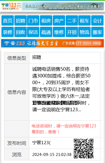 诚聘电话销售50名,薪资待遇3000加提成,综合薪资5000+,20到35周岁,男女不限(大专及以上学历有经验者可放宽学历)做六休一,法定节假日正常放假,带薪