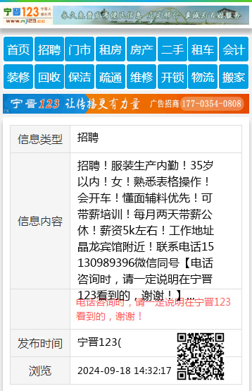 招聘!服装生产内勤!35岁以内!女!熟悉表格操作!会开车!懂面辅料优先!可带薪培训!每月两天带薪公休!薪资5k左右!工作地址晶龙宾馆附近!联系电话15130989396微信同号 【电话咨询时,请一定说明在宁晋123看到的,谢谢!】 |