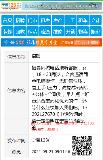 招募同城电话接听客服,女,18-33周岁,会普通话简单电脑操作,无销售性质,易上手0压力,高提成+周结+公休+全勤奖,早九点上班更适合宝妈和优秀的你,还等什么赶快加入我们吧。13292127670 【电话咨询时,请一定说明在宁晋123看到的,谢谢!】 |