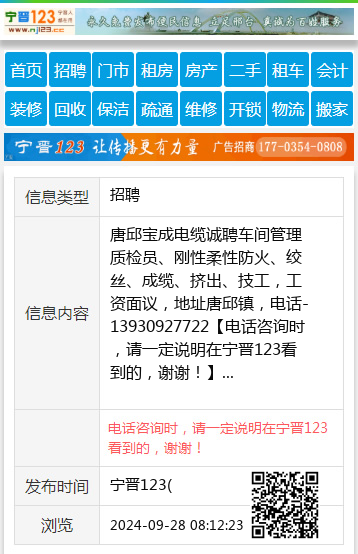 | 防骗提醒: | 宁晋123(www.nj123.cc)提醒您:手工活、网络兼职、刷单,都是骗子!凡以各种名义收取费用的都是骗子!找工作是往兜里挣钱,让你往外掏钱的都是骗子!异地招聘请提高警惕,谨防诈骗! |