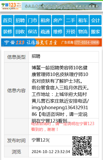 博鳌一龄招聘美容师10名健康管理师10名皮肤理疗师10名对皮肤有了解护士3名。前台管食宿入三险月休四天。工作地址:上城华府大陆村黄儿营石家庄就近安排电话/img/phonepng13643293186 【电话咨询时,请一定说明在宁晋123看到的,谢谢!】 |