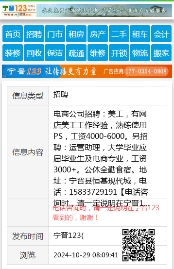 | 防骗提醒: | 宁晋123(www.nj123.cc)提醒您:手工活、网络兼职、刷单,都是骗子!凡以各种名义收取费用的都是骗子!找工作是往兜里挣钱,让你往外掏钱的都是骗子!异地招聘请提高警惕,谨防诈骗! |