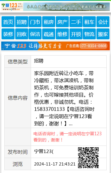 家乐园附近转让小吃车,带冷藏柜,带冰淇凌机,带制奶茶机,可免费培训奶茶制作,也可嫁接其他项目。价格优惠,非诚勿扰。电话:15833701133 【电话咨询时,请一定说明在宁晋123看到的,谢谢!】 |