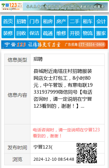 宁晋123(www.nj123.cc)提醒您:手工活、网络兼职、刷单,都是骗子!凡以各种名义收取费用的都是骗子!找工作是往兜里挣钱,让你往外掏钱的都是骗子!异地招聘请提高警惕,谨防诈骗!