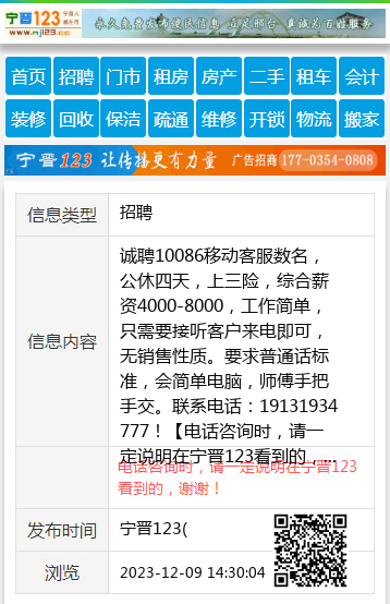 诚聘10086移动客服数名,公休四天,上三险,综合薪资4000-8000,工作简单,只需要接听客户来电即可,无销售性质。要求普通话标准,会简单电脑,师傅手把手交。联系电话:19131934777! 【电话咨询时,请一定说明在宁晋123看到的,谢谢!】 |
