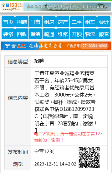 | 防骗提醒: | 宁晋123(www.nj123.cc)提醒您:手工活、网络兼职、刷单,都是骗子!凡以各种名义收取费用的都是骗子!找工作是往兜里挣钱,让你往外掏钱的都是骗子!异地招聘请提高警惕,谨防诈骗! |