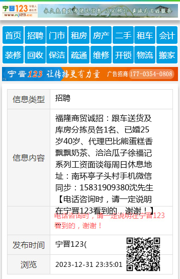 福隆商贸诚招:跟车送货及库房分拣员各1名、已婚25岁40岁、代理巴比熊蛋糕香飘飘奶茶、洽洽瓜子徐福记系列工资面谈每周日休息地址:南环亭子头村手机微信同步:15831909380沈先生 【电话咨询时,请一定说明在宁晋123看到的,谢谢!】 |