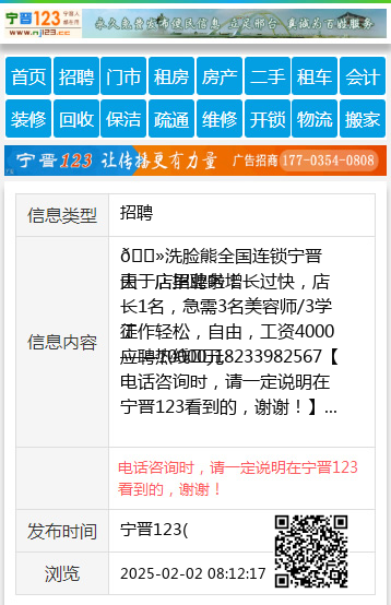 应聘热线☎️18233982567 【电话咨询时,请一定说明在宁晋123看到的,谢谢!】 |