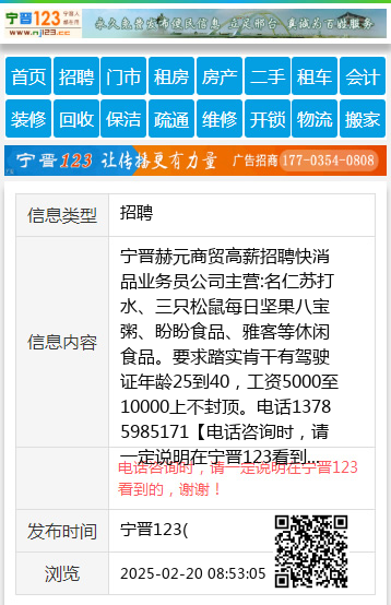 | 防骗提醒: | 宁晋123(www.nj123.cc)提醒您:手工活、网络兼职、刷单,都是骗子!凡以各种名义收取费用的都是骗子!找工作是往兜里挣钱,让你往外掏钱的都是骗子!异地招聘请提高警惕,谨防诈骗! |
