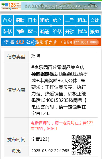 | 防骗提醒: | 宁晋123(www.nj123.cc)提醒您:手工活、网络兼职、刷单,都是骗子!凡以各种名义收取费用的都是骗子!找工作是往兜里挣钱,让你往外掏钱的都是骗子!异地招聘请提高警惕,谨防诈骗! |