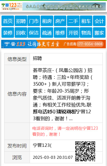 荟萃茶庄-(凤凰公园店)招聘;待遇:三险+年终奖励(3500+)新人可带薪学习;要求:年龄20-35周岁;形象气质佳、活泼开朗善于沟通;有相关工作经验优先.联系电话15031927887..