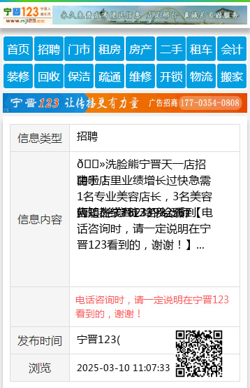 应聘热线18233982567 【电话咨询时,请一定说明在宁晋123看到的,谢谢!】 |