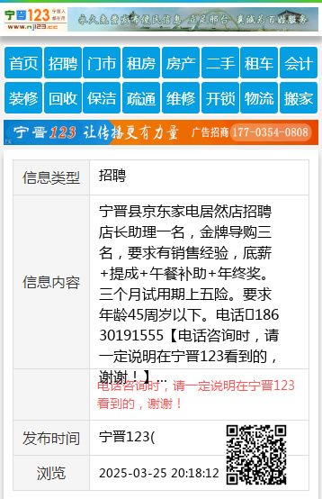 宁晋县京东家电居然店招聘店长助理一名,金牌导购三名,要求有销售经验,底薪+提成+午餐补助+年终奖。三个月试用期上五险。要求年龄45周岁以下。电话18630191555 【电话咨询时,请一定说明在宁晋123看到的,谢谢!】 |