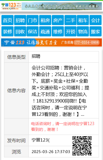 | 防骗提醒: | 宁晋123(www.nj123.cc)提醒您:手工活、网络兼职、刷单,都是骗子!凡以各种名义收取费用的都是骗子!找工作是往兜里挣钱,让你往外掏钱的都是骗子!异地招聘请提高警惕,谨防诈骗! |
