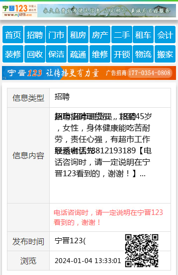 | 防骗提醒: | 宁晋123(www.nj123.cc)提醒您:手工活、网络兼职、刷单,都是骗子!凡以各种名义收取费用的都是骗子!找工作是往兜里挣钱,让你往外掏钱的都是骗子!异地招聘请提高警惕,谨防诈骗! |