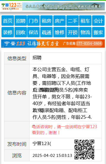 | 防骗提醒: | 宁晋123(www.nj123.cc)提醒您:手工活、网络兼职、刷单,都是骗子!凡以各种名义收取费用的都是骗子!找工作是往兜里挣钱,让你往外掏钱的都是骗子!异地招聘请提高警惕,谨防诈骗! |
