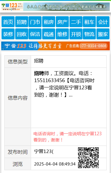 免责声明:本栏目信息由网友自行发布,宁晋123不承担任何责任!提高警惕,谨防诈骗!做推广、做信息置顶!请加宁晋123客服微信:ningjin009