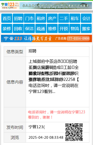 | 防骗提醒: | 宁晋123(www.nj123.cc)提醒您:手工活、网络兼职、刷单,都是骗子!凡以各种名义收取费用的都是骗子!找工作是往兜里挣钱,让你往外掏钱的都是骗子!异地招聘请提高警惕,谨防诈骗! |