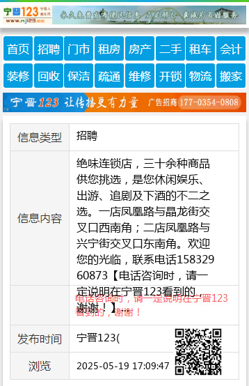 绝味连锁店,三十余种商品供您挑选,是您休闲娱乐、出游、追剧及下酒的不二之选。一店凤凰路与晶龙街交叉口西南角;二店凤凰路与兴宁街交叉口东南角。欢迎您的光临,联系电话15832960873 【电话咨询时,请一定说明在宁晋123看到的,谢谢!】 |