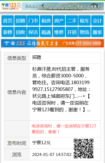 杉鼎汗蒸.时代招主管,服务员,综合薪资3000-5000,管吃住。咨询电话.18031999927.15127905807,地址:状元路上城御府东门...--+ 【电话咨询时,请一定说明在宁晋123看到的,谢谢!】 |
