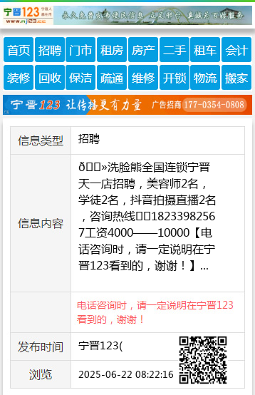 🐻洗脸熊全国连锁宁晋天一店招聘,美容师2名,学徒2名,抖音拍摄直播2名,咨询热线☎️18233982567工资4000——10000 【电话咨询时,请一定说明在宁晋123看到的,谢谢!】 |