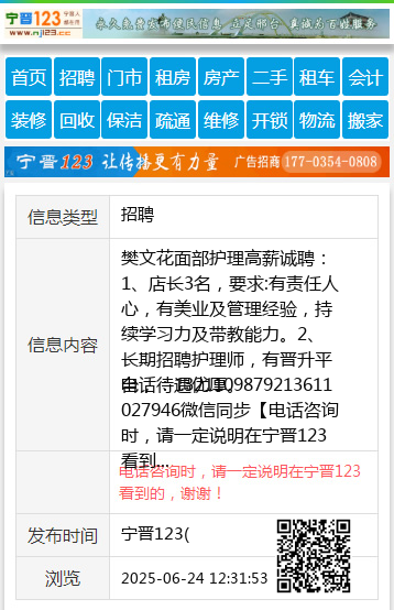 樊文花面部护理高薪诚聘:1、店长3名,要求:有责任人心,有美业及管理经验,持续学习力及带教能力。2、长期招聘护理师,有晋升平台,待遇优厚。