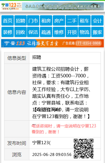 建筑工程公司招聘会计,薪资待遇:工资5000--7000,社保,要求:有建筑行业相关工作经验,大专以上学历、踏实认真有责任心,工作地点:宁晋县城,联系电话:15530917660